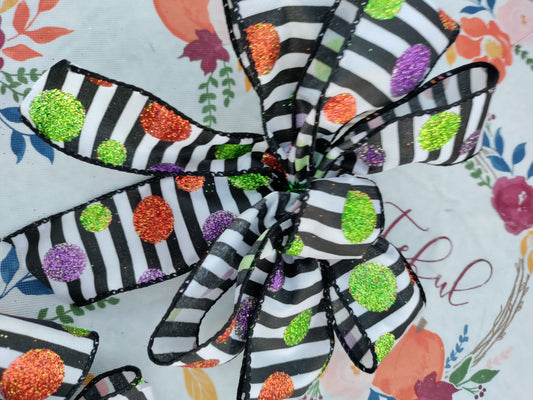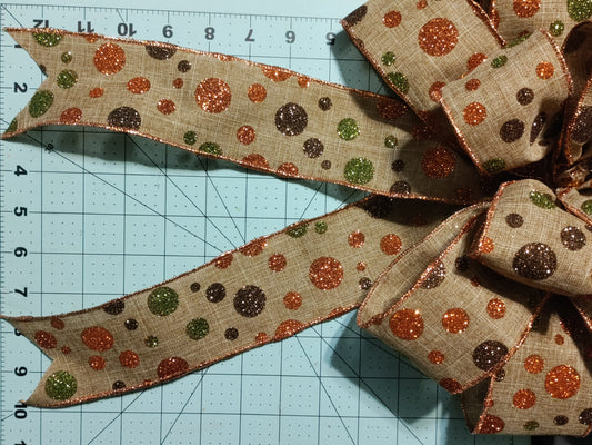 Burlap Bow with Green, Burnt Orange, and Brown Polka Dots