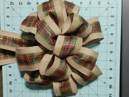 Burnt Orange, Brown, and Gold Plaid Bow with a Tail