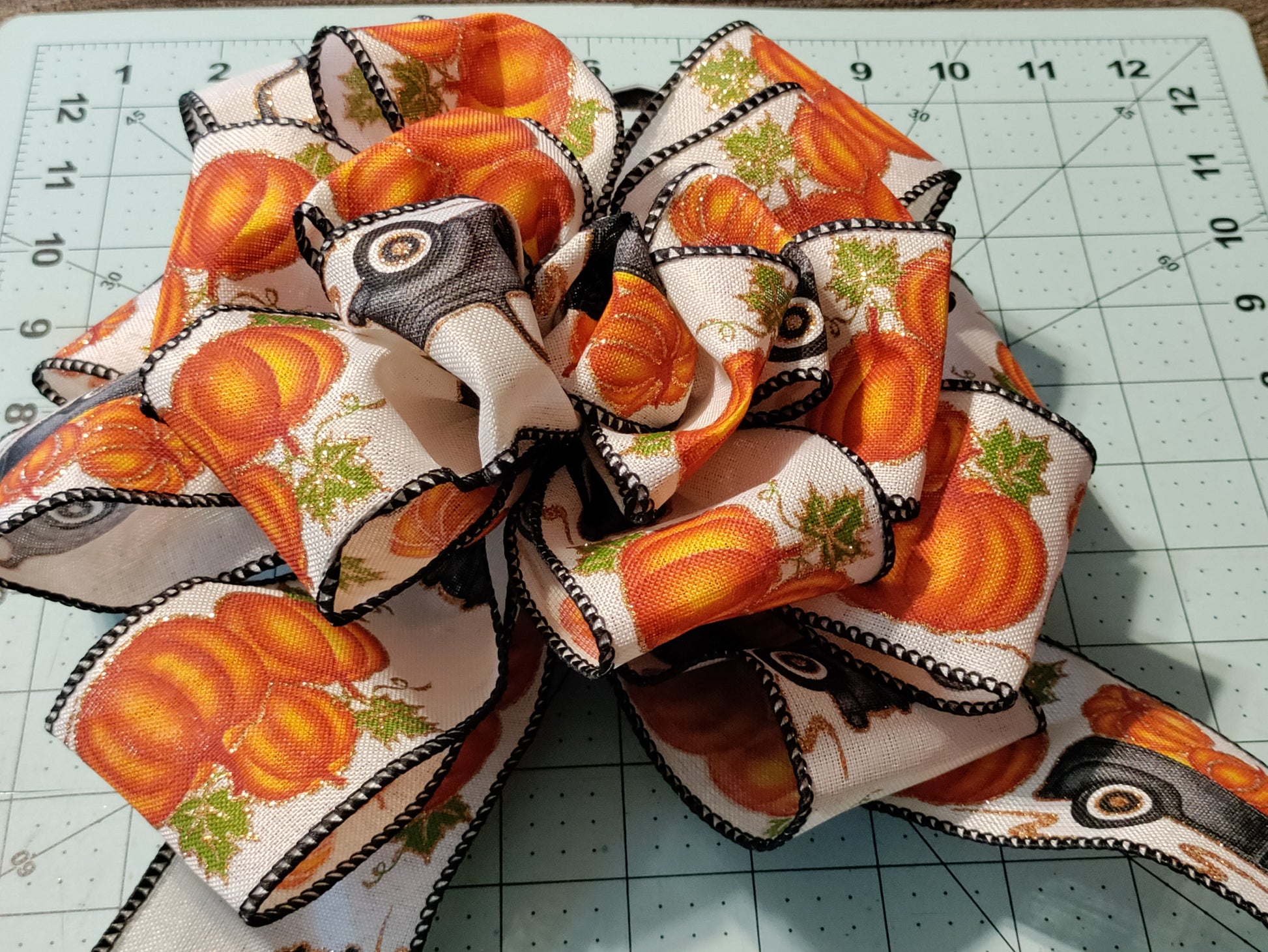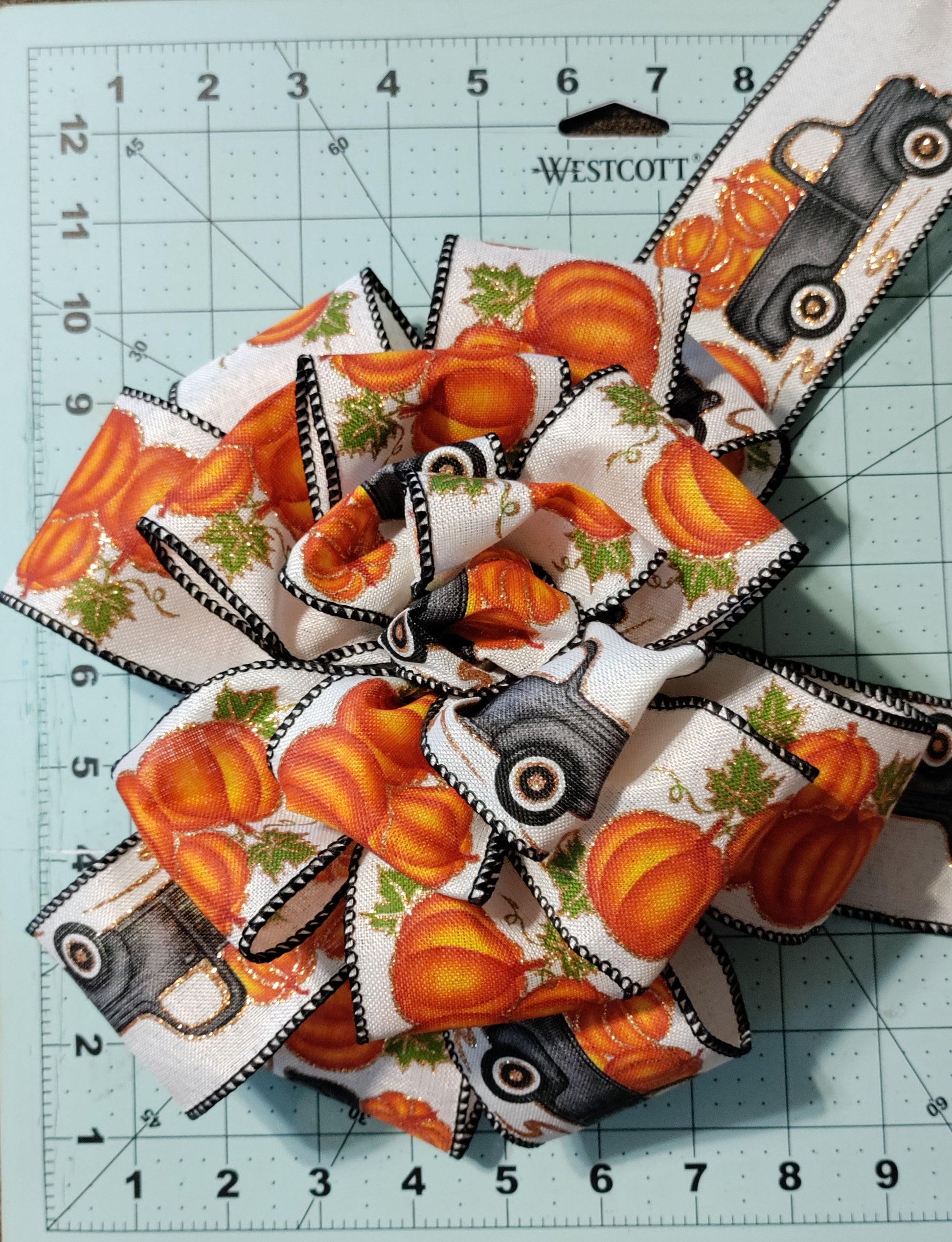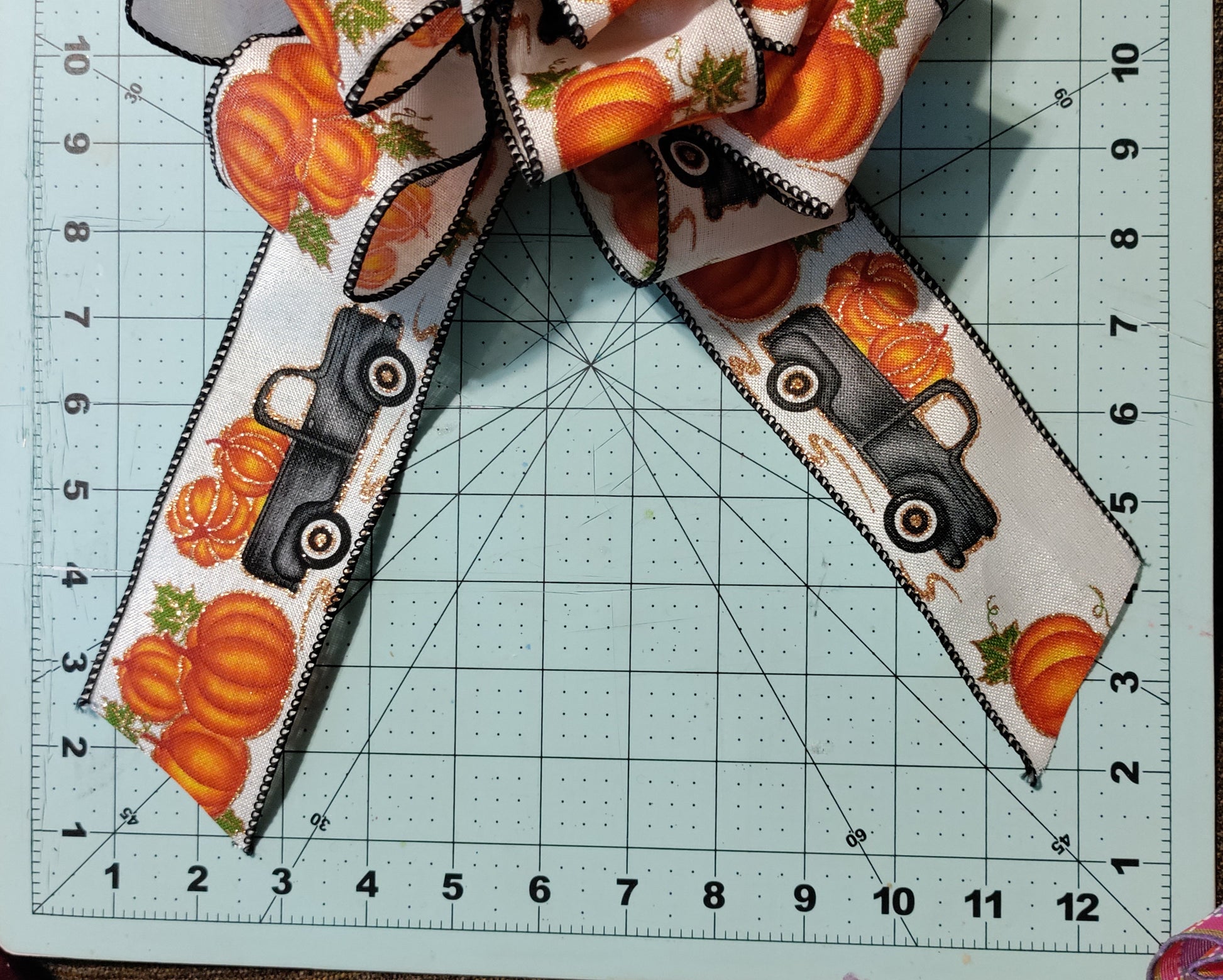 Hand-tied 2.5-inch Fall Black Truck and Pumpkins Bow with Tail. Each one of our bows is hand-made. They are made with great care, love, and attention to detail. If you have any issues with your bow please contact us and we will try our best to fix the issue.