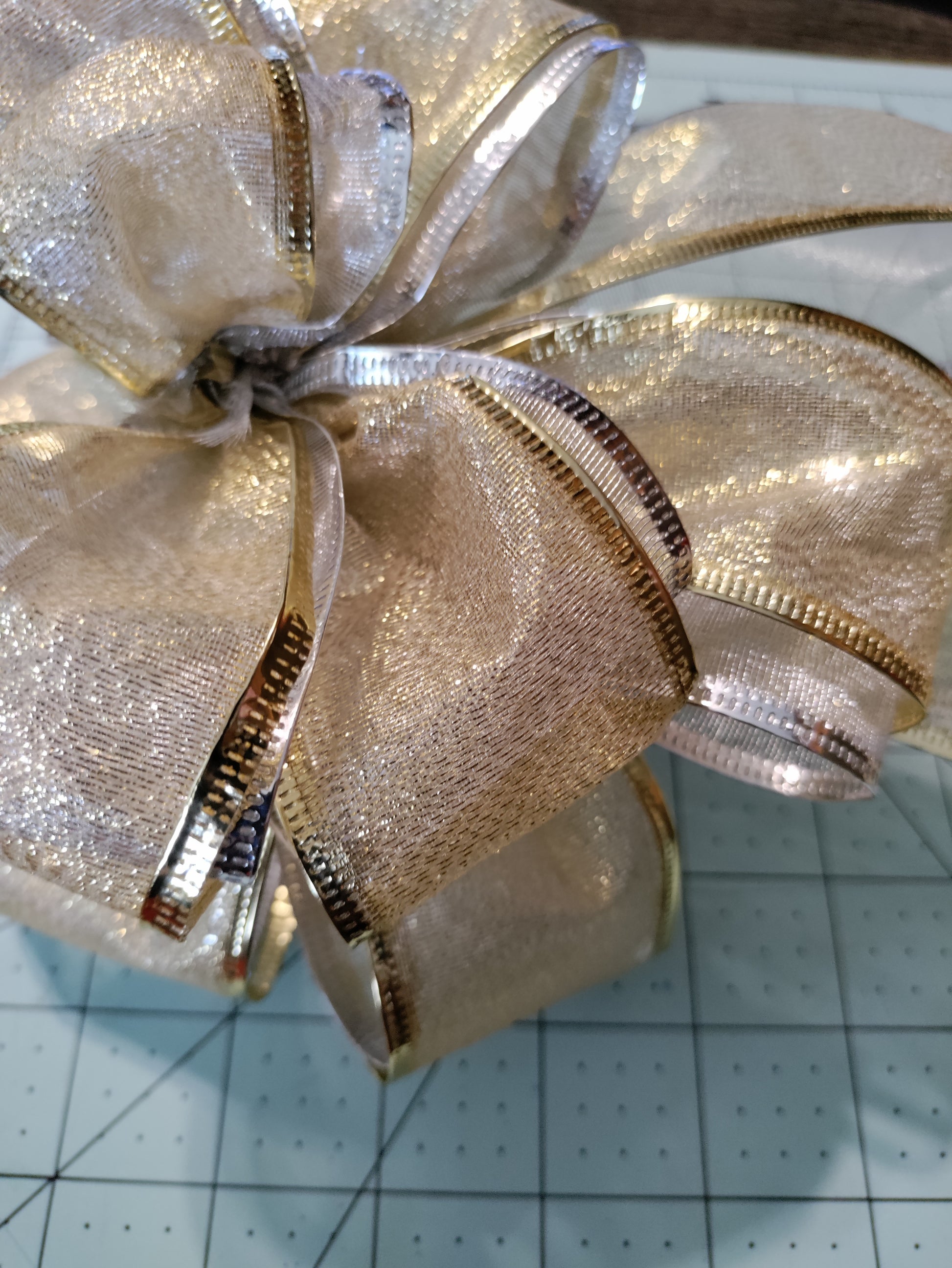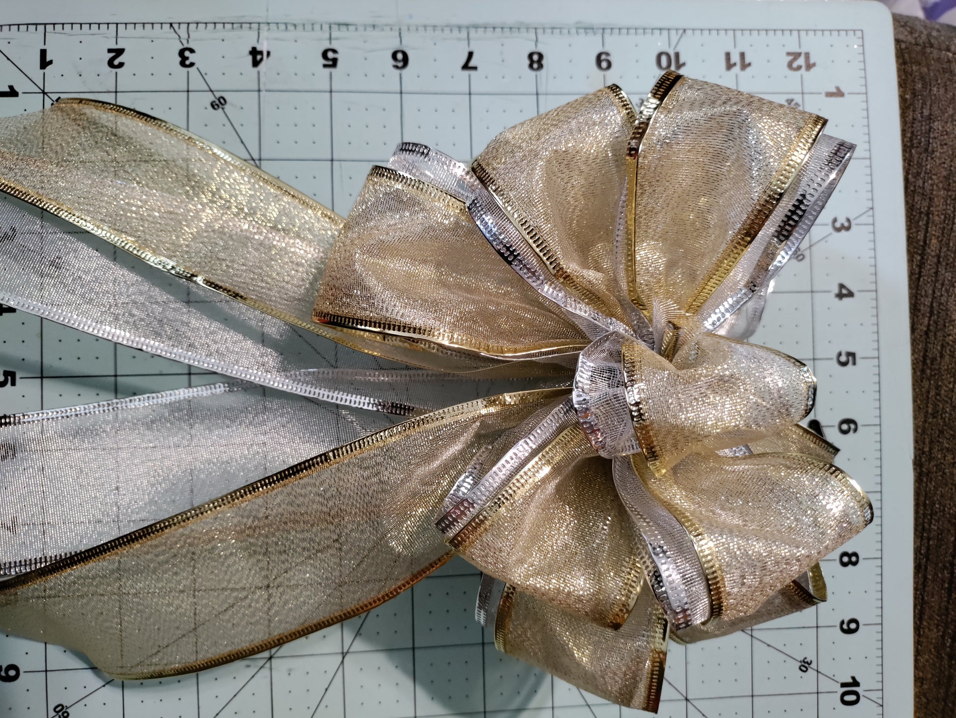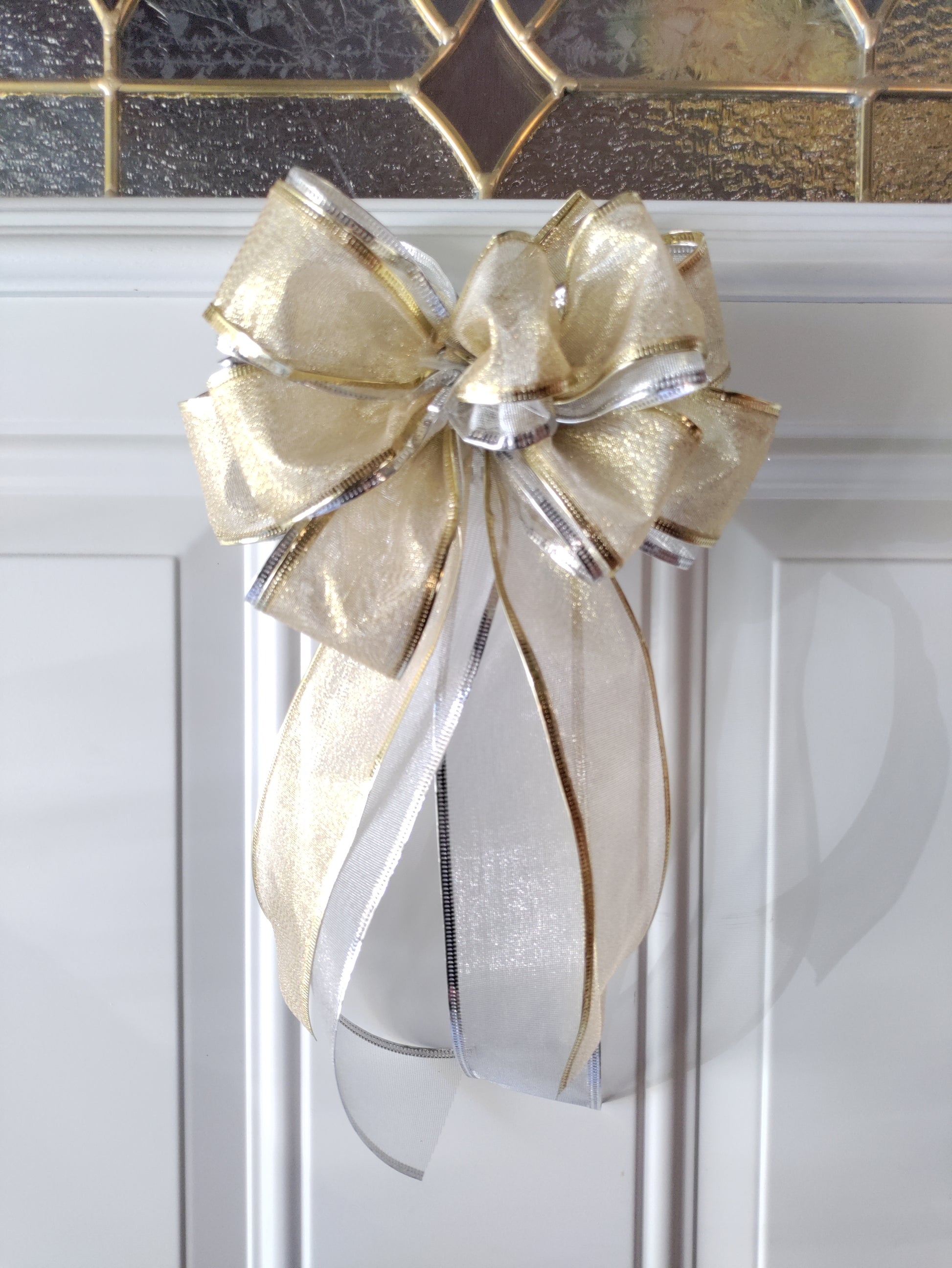 Silver and Gold Wired Bow. Elevate your decor with our handcrafted bows, which add a touch of warmth and sophistication to any setting. Each one of our bows is hand-made. They are made with great care, love, and attention to detail. If you have any issues with your bow please contact us and we will try our best to fix the issue.